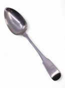 An Irish silver dessert spoon, Dublin 1820 by maker James England, retailed by M West, the spoon is engraved "1820 Louth Grand Jury" approx. 34 grams
