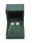 A pair of diamond and pink gem set earrings set in 18ct gold approx. 3.9 grams for auction on the instructions of Barnados