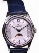 A Karl-Leimon Single Monophase WHITE BLUE HANDS wrist watch in box with papers