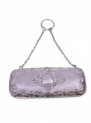 A silver purse, lined in green card, on a chain, total weight approx. 95 grams, hallmarked Birmingham c1924 (dated letter rubbed) by Samuel M Levi (4.6 inches by 2 inches)