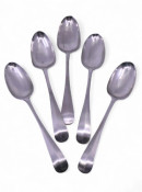 A rare set of five Crested Irish Provincial Silver tablespoons, Cork c1780, each spoon is struck twice with the maker's mark mark of John Nicholson and once with STERLING, total weight approx. 383 grams