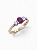A ruby and diamond three stone ring set in 18ct gold approx. 4.3 grams finger size U