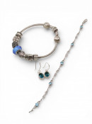 A silver bracelet and earrings and gem set bracelet