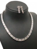 A fine diamond cluster necklace and earrings set in 18ct gold total estimated weight of diamonds 16.15cts, weight approx. 52.4 grams, length of necklace approx. 14 inches, each earrings is approx. 0.75 inches.