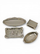 Three silver dishes and silver match box holder, total weight approx. 118 grams