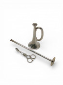 A silver sugar nips approx. 29.3 grams Birm 1853 by Yapp & Woodward, A silver trumpet vase approx. 115 grams (filled base) Birm 1911 and a silver place card holder approx. 25 grams London 1932